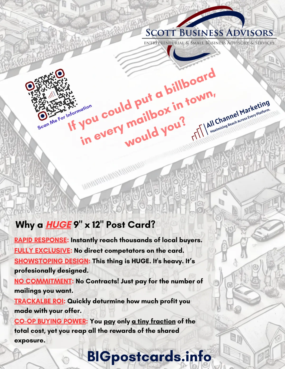 This postcard is HUGE! At 9x12 in size, this WILL be the largest piece of mail in the neighborhood.